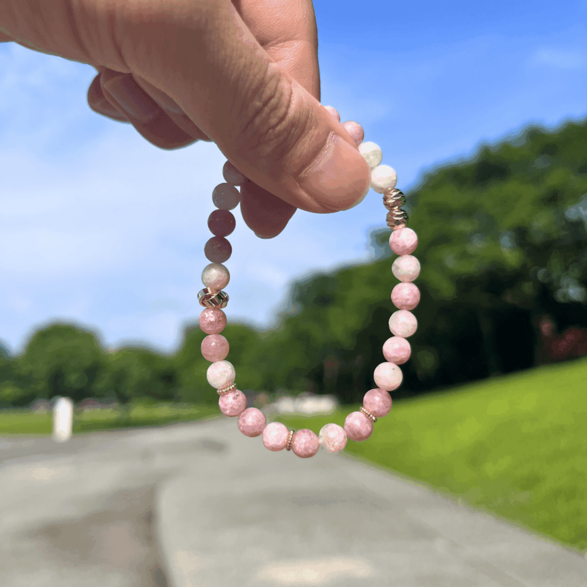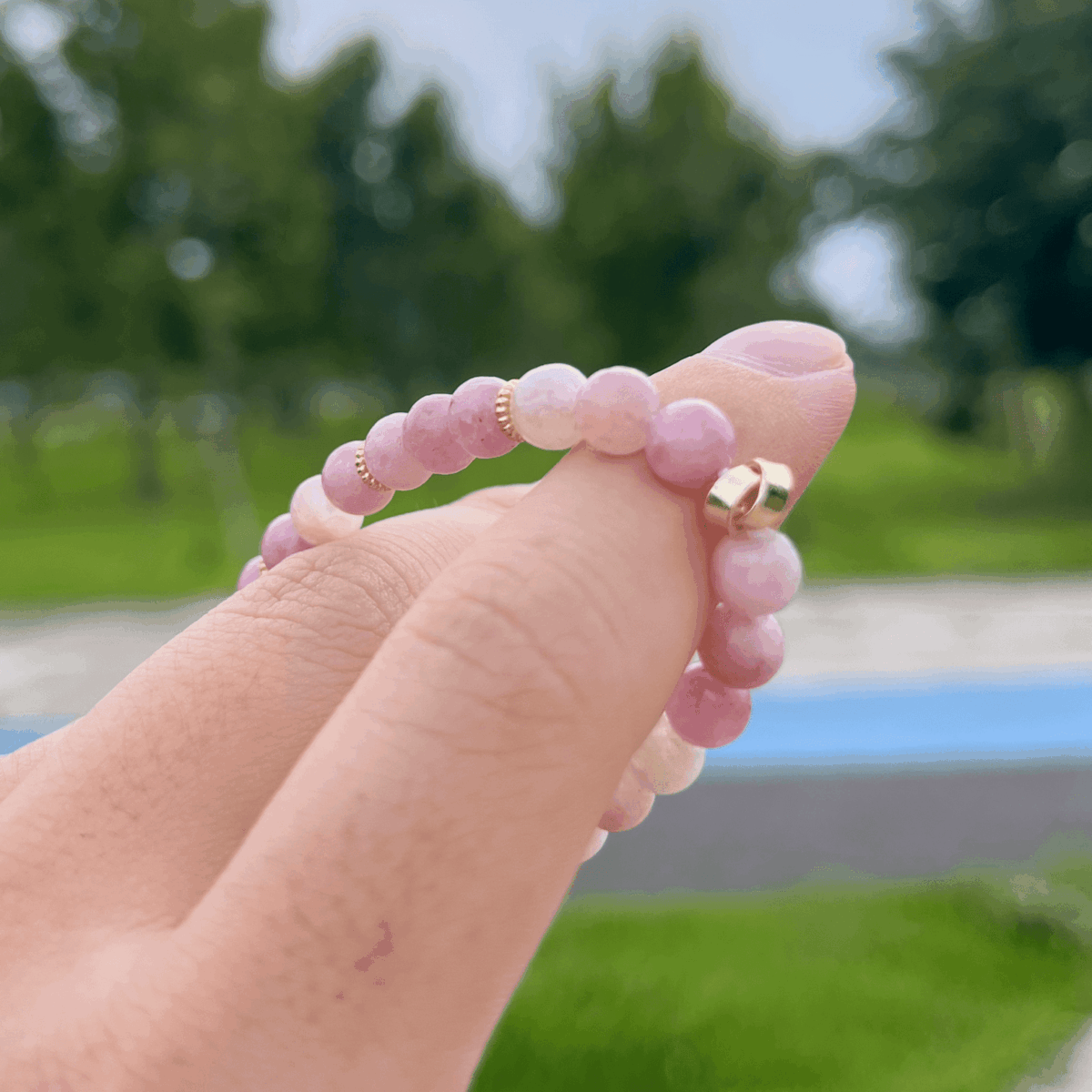 選用紅銅鈦補足五行火能量,並搭配紅超七加強水晶能量磁場。金屬色提振氣場、象徵自我價值的建立,圓珠設計也代表能量平衡與溫和力量的循環。